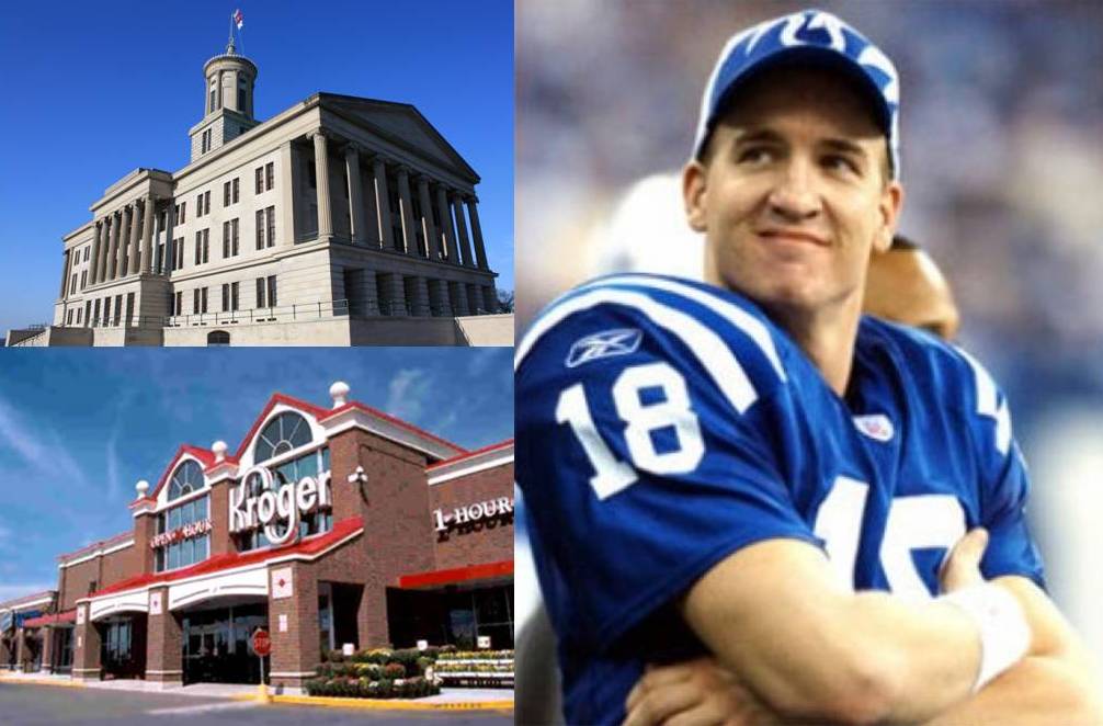 Manning picture from inquisitr.com, TN Legislature picture from capitol.tn.gov, Kroger picture from clippergirl.com